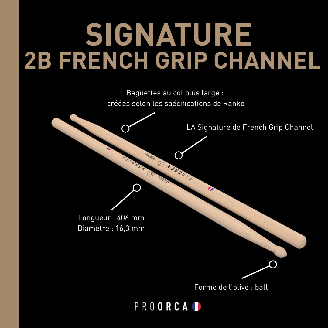 Signature 2B French Grip Channel x ProOrca - drum sticks